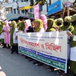 টেকসই বেড়িবাঁধসহ সাত দফা দাবিতে সাতক্ষীরায় নারীদের মানববন্ধন