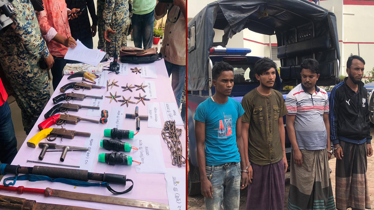 কক্সবাজারের রোহিঙ্গা ক্যাম্পে বিপুল পরিমাণ অস্ত্র ও গোলাবারুদসহ ৪ আরসা সদস্য গ্রেফতার