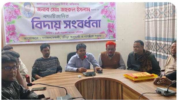 কলারোয়ায় গণমাধ্যমকর্মী ও নাগরিক সমাজের আয়োজনে ইউএনও’র বিদায়ী সংবর্ধনা