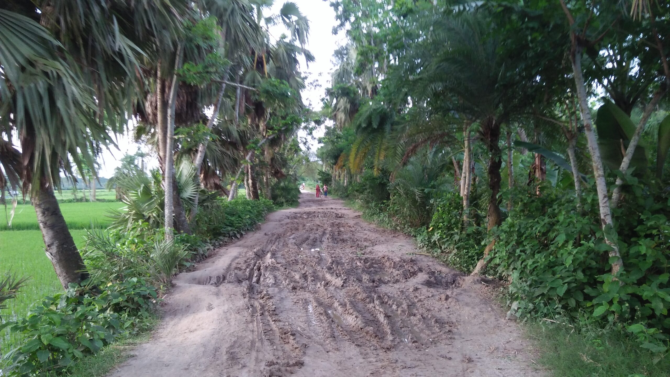সরজমিন দেখা গেছে, ২ কি.মি. কর্দমাক্ত ও পিচ্ছিল কাঁচা রাস্তাটি বড় বড় গর্ত থাকায় মানুষকে জুতা খুলে পথ চলতে হয়। আর খানাখন্দে আটকে পড়া যানবাহনগুলোকে পড়তে হয় বিপাকে।