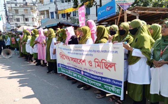সাতক্ষীরায় নার্সদের বিক্ষোভ ও মানববন্ধন