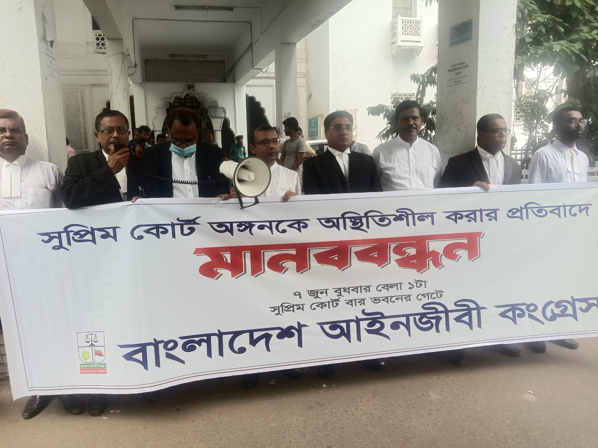 সুপ্রিম কোর্ট অঙ্গনে দীর্ঘদিনের চলমান অস্থিতিশীলতা নিরসনে প্রধান বিচারপতির হস্তক্ষেপ কামনা করেছে বাংলাদেশ আইনজীবী কংগ্রেস। সংগঠনটির সুপ্রিম কোর্ট বার শাখা আয়োজিত এক মানববন্ধনে আজ এই দাবী জানানো হয়।