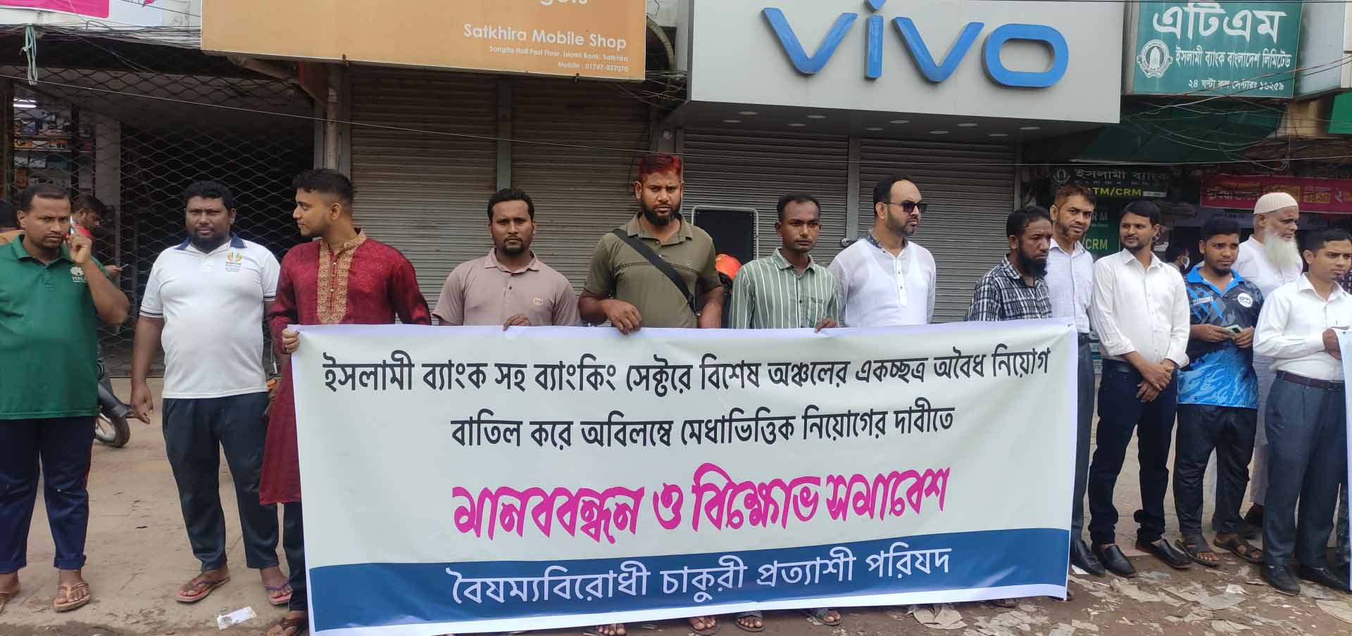 ইসলামী বাংকের অবৈধ বিনিয়োগ ও নিয়োগ বাতিলের দাবিতে সাতক্ষীরায় মানববন্ধন