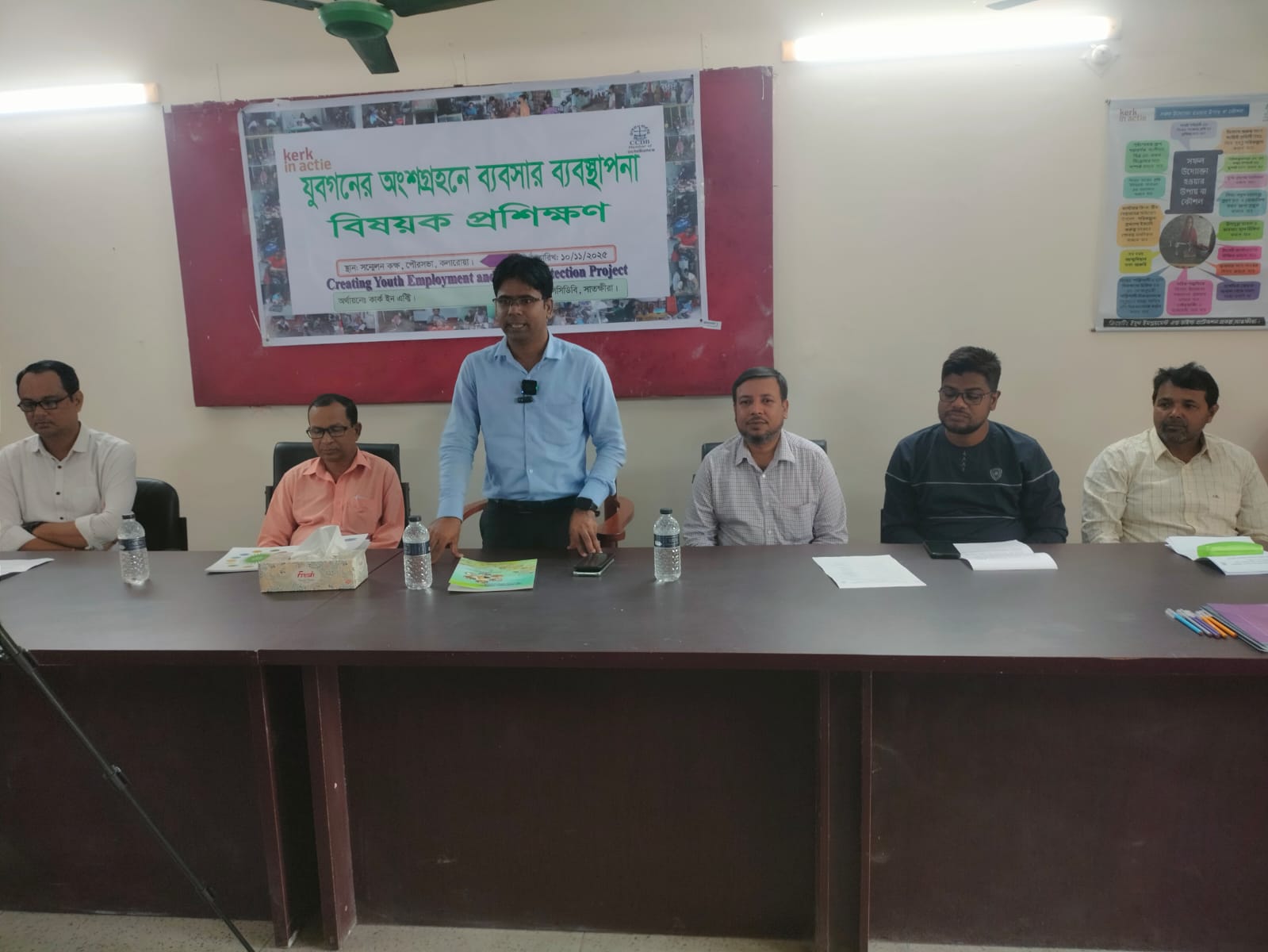 সংস্থার টেকনিক্যাল অফিসার ইকরামুল কবিরের সঞ্চালনায় আরো উপস্থিত ছিলেন সাংবাদিক প্রভাষক আরিফ মাহমুদ সংস্থার হিসাব কর্মকর্তা রিচার্ড অধিকারী, ফিল্ড অর্গানায়জার রিপন বাড়ৈ, সুদীপ্ত বিশ্বাসসহ প্রশিক্ষনার্থী যুবগন।
