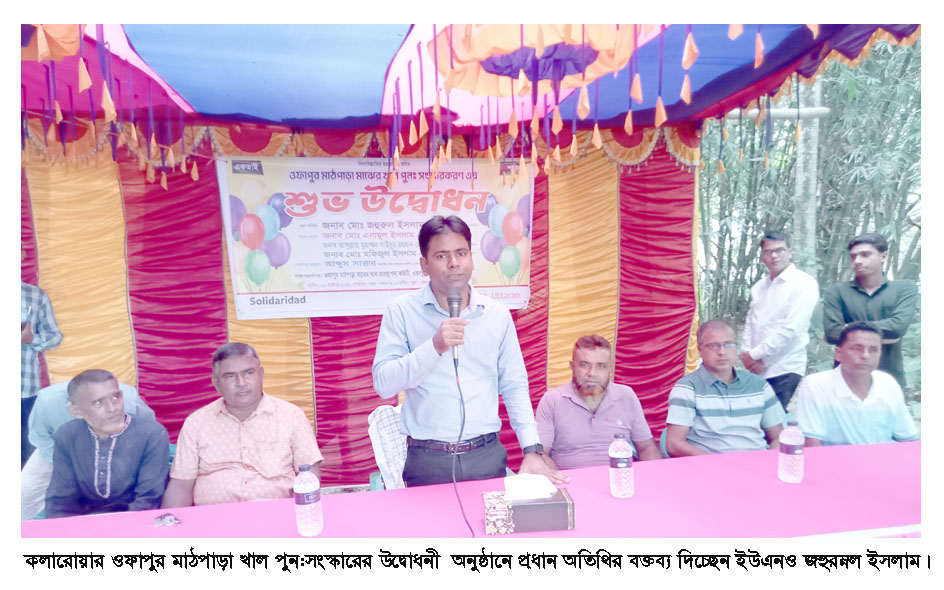 উল্লেখ্য-ওফাপুর খাল ব্যবস্থাপনা কমিটির উদ্যোগে ওফাপুর মাঠপাড়া মাঝের খাল পুন:সংস্কারের কাজ উদ্বোধন করা হয়। এর আগে ২০২৩ সালে রাজকীয় নেদারল্যান্ডস সরকারের অর্থায়নে ও উত্তরণ এবং সলিডারিডাড নেটওয়ার্ক এশিয়ার সহযোগিতায় ওই খালটি পুন:খনন করা হয়েছিল।