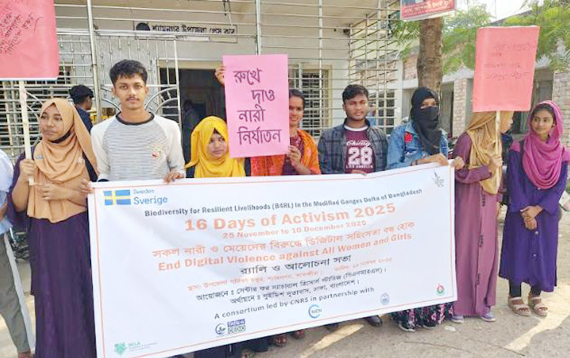 ডিজিটাল সহিংসতা প্রতিরোধে শ্যামনগরে র্যালি, মানববন্ধন ও সংবাদ সম্মেলন