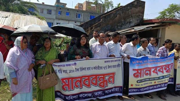 তালায় এমপিওভুক্ত শিক্ষক-কর্মচারীদের মানববন্ধন