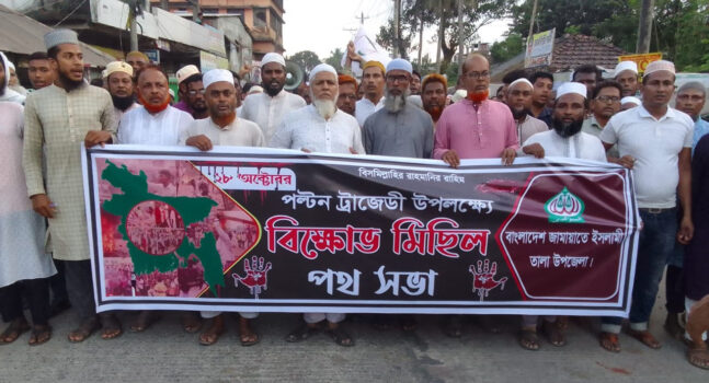 তালায় পল্টন ট্রাজেডি স্মরণে জামায়াতে ইসলামীর বিক্ষোভ মিছিল ও পথসভা