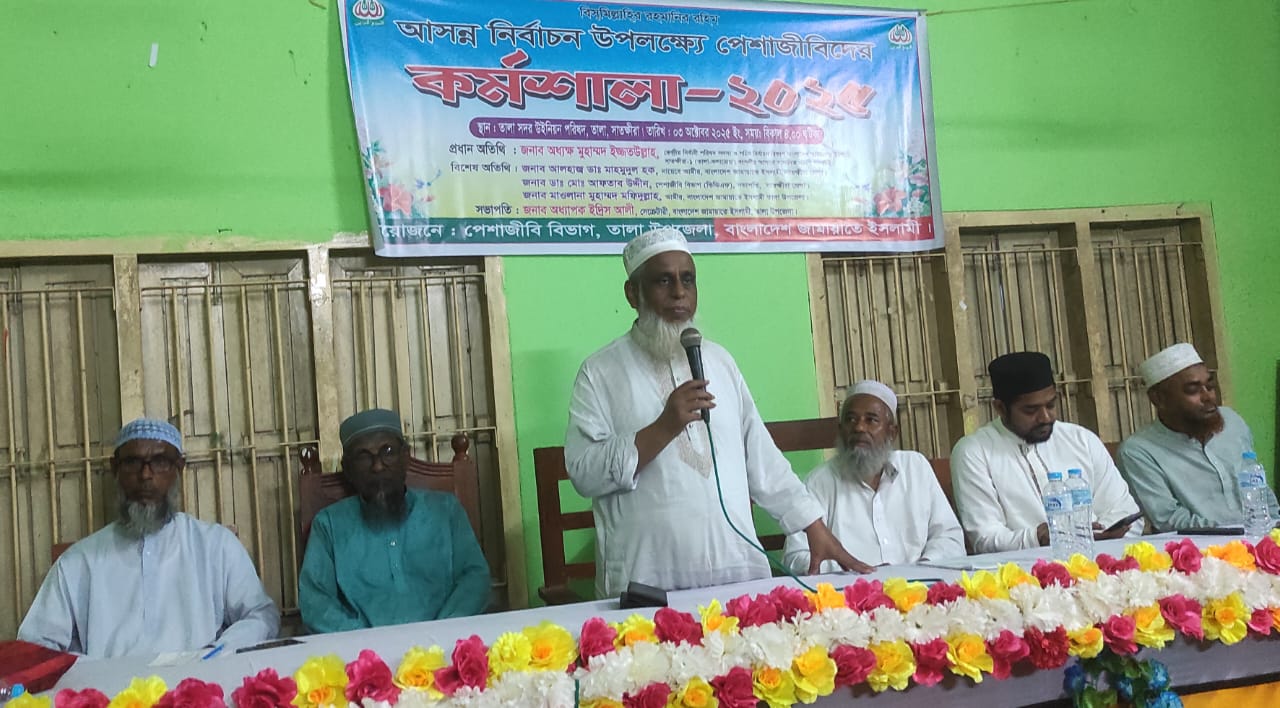 তালা ( সাতক্ষীরা) প্রতিনিধি : শুক্রবার (৩ অক্টোবর) বিকাল ৪টায় বাংলাদেশ জামায়াতে ইসলামীর পেশাজীবি বিভাগের আয়োজনে তালা ইউনিয়ন পরিষদ হলরুমে পেশাজীবিদের নিয়ে নির্বাচনী কর্মশালা অনুষ্ঠিত হয়েছে। উপজেলা সেক্রেটারি অধ্যাপক ইদ্রিস আলীর সভাপতিত্বে এবং পেশাজীবি সেক্রেটারি হাফেজ শাহ আলমের সঞ্চালনায় অনুষ্ঠানে প্রধান অতিথি হিসেবে বক্তব্য রাখেন সাতক্ষীরা-১ (তালা-কলারোয়া) আসনের সংসদ সদস্য প্রার্থী অধ্যক্ষ মো. ইজ্জত উল্লাহ।