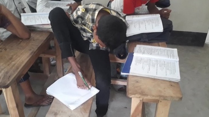 দুই হাত নেই, তাতে কী? থেমে নেই লেখাপড়া