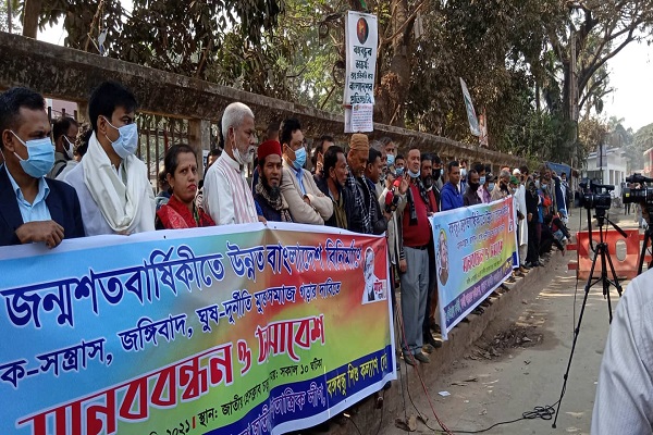 আজ রবিবার জাতীয় প্রেসক্লাবের সামনে দুর্নীতি প্রতিরোধ কমিটি, কাজী আফে ফাউন্ডেশন, বাংলাদেশ জাতীয় গণতান্ত্রিক লীগ ও বঙ্গবন্ধু শিশু কল্যাণ কেন্দ্রের যৌথ উদ্রোগে “বঙ্গবন্ধুর জন্মশত বার্ষিকীতে-উন্নত বাংলাদেশ বিনর্মানে মাদক-স্ত্রাস-জঙ্গিবাদ-ঘুষ-দুর্নীতি মুক্ত সমাজ গড়ার দাতিতে” আয়োজিত মানববন্ধন কর্মসূচীতে সংহতি প্রকাশ করে জাতীয় নেতৃবৃন্দ এসব কথা বলেন।