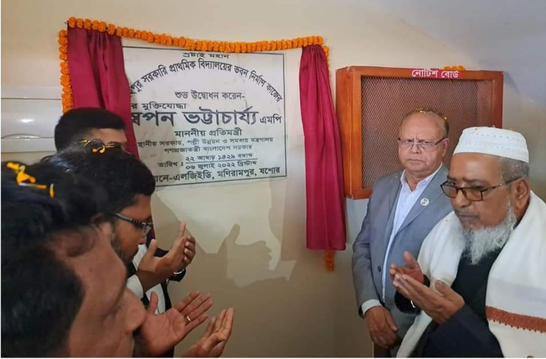 যশোরের মণিরামপুর উপজেলার মশ্বিমনগর ইউনিয়নের শাহপুর সরকারি প্রাথমিক বিদ্যালয়ের নতুন ভবনের শুভ উদ্বোধন করেছেন স্থানীয় সরকার,পল্লী উন্নয়ন ও সমবায় মন্ত্রণালয়ের প্রতিমন্ত্রী ও যশোর-৫ (মণিরামপুর) আসনের সংসদ সদস্য স্বপন ভট্টাচার্য্য।