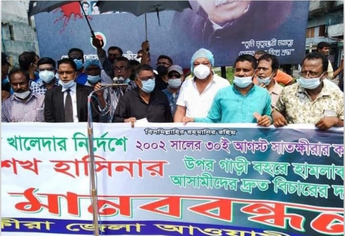 শেখ হাসিনার গাড়িবহরে হামলা: জড়িতদের শাস্তির দাবিতে সাতক্ষীরায় মানববন্ধন