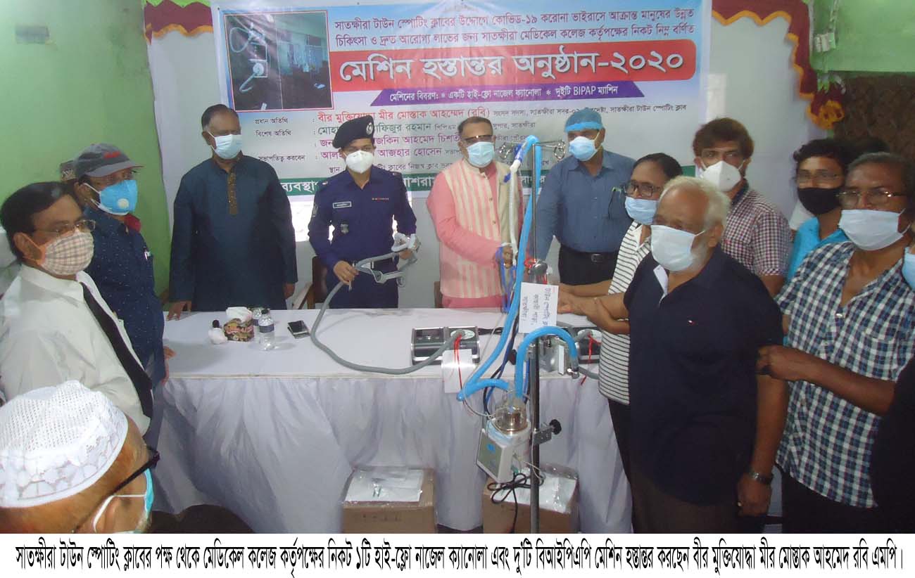 সাতক্ষীরা মেডিকেলে ১টি হাই-ফ্লো নাজেল ক্যানোলা এবং দু’টি বিআইপিএপি মেশিন হস্তান্তর